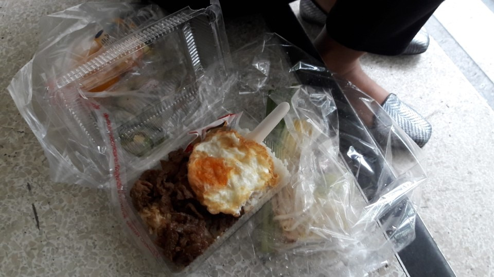 그래서 와이프랑 점심 도시락 포장을 사서 이렇게 애처롭게 둘이서 점심을 먹었습니다.