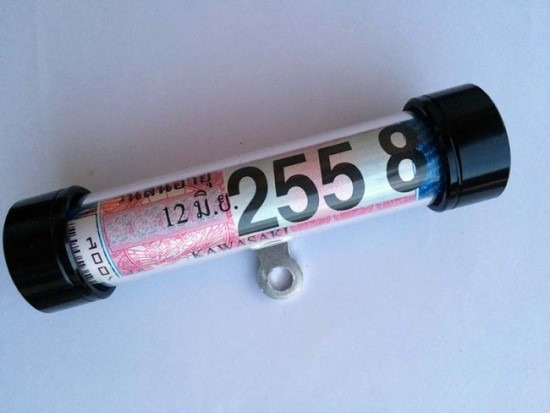 많은 수의 오토바이들은 이렇게 둥근 통에 담아서 오토바이 외관에 장착을 합니다. 경찰들이 검문할때 여기 보라고~