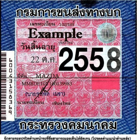 이렇게 생긴게 태국의 차량 검사와 세금낸 스티커입니다.